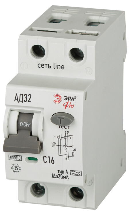<p>Автоматический выключатель дифференциального тока 6кА ЭРА АД-32 линейки Pro. АВДТ электронного типа. Профессиональные АВДТ ЭРА защищают человека от поражения электрическим током при повреждении изоляции электроустановок, предотвращают пожары вследствие протекания токов утечки на землю, предохраняют от перегрузки и короткого замыкания. Рекомендуются для защиты групповых линий, питающих розетки наружной установки, розеток и освещения подвалов и гаражей. Современное решение для квартирных щитков и промышленного применения.</p>
