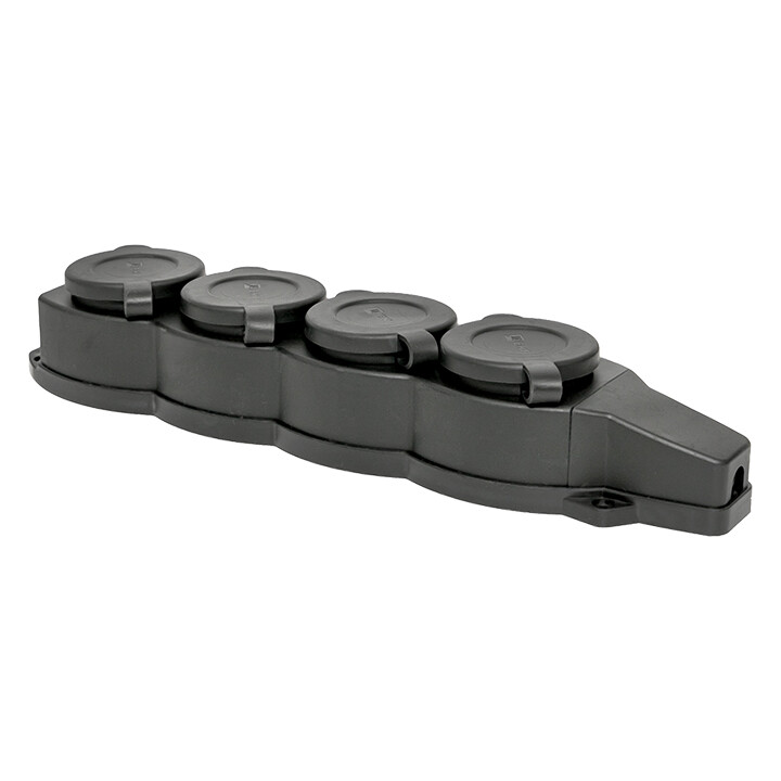 Четырехместная розетка (колодка) RPS-015 Basic предназначена для создания точки подключения к электрической сети. Может применяться как в мобильном, так и в стационарном исполнении (крепление к вертикальной или горизонтальной поверхности). Позволяет подключать до четырех приборов одновременно с сумарным током потребления 16А к сети 230В / 50Гц. Колодка имеет кабельный ввод и каждое гнездо закрывается защитной крышкой, что позволяет обеспечить степень защиты IP44 даже в нерабочем положении. Соответствует стандарту Shuko.