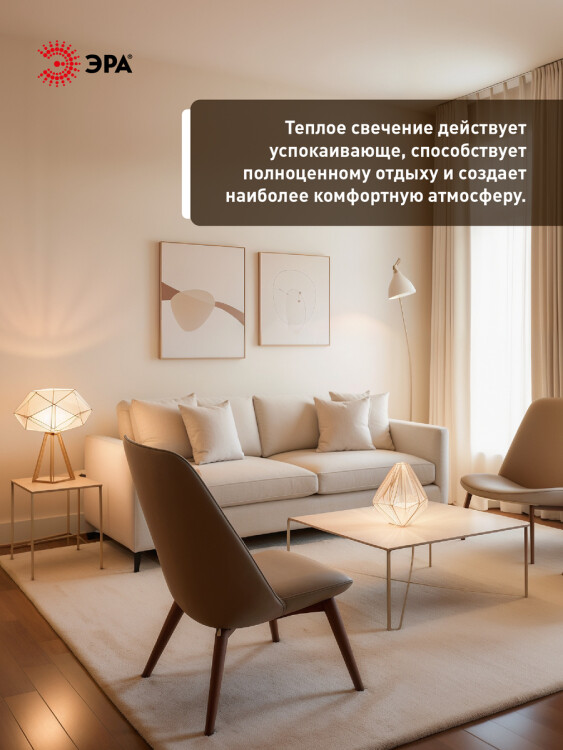 Бытовая светодиодная лампа ЭРА Серии Стандарт, создаёт яркое ровное освещение и экономит до 90% электроэнергии по сравнению с лампой накаливания с аналогичным световым потоком. Светит теплым светом с жёлтым оттенком - такая цветовая температура эффективна для отдыха и уютной атмосферы в доме. Используется в потолочных, настенных, настольных светильниках, в люстрах и бра. Мгновенно включается и не нагревается.