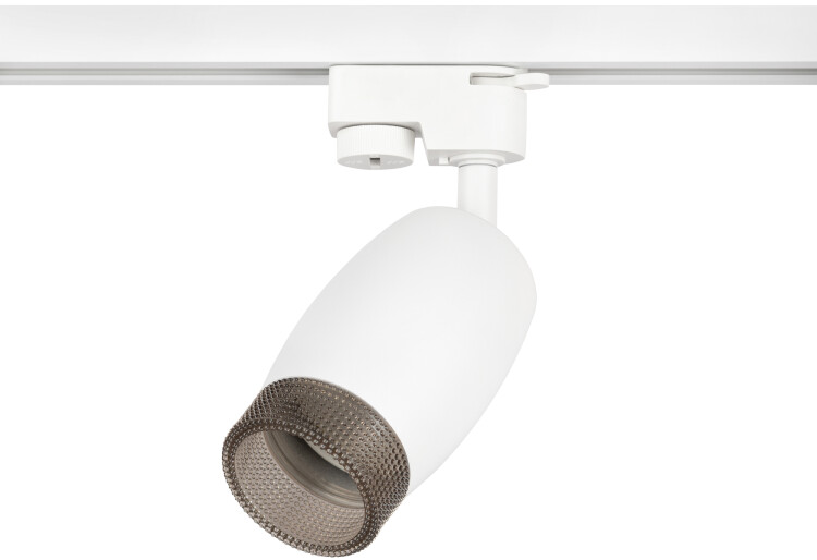 <p>Однофазный трековый светильник под лампу с цоколем GU10. Светильник выполнен из алюминия и пластика. На передней части плафона находится пластиковое кольцо, стилизированное под хрусталь. Во включенном виде данное кольцо наполняется светом и создает превосходный визуальный эффект, а также оно выполняет функцию ограничителя угла рассеивания светового потока, снижая эффект ослепления светом.</p>