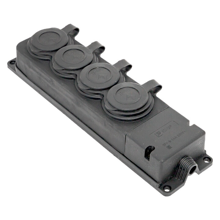 Четырехместная розетка (колодка) RPS-020 Proxima предназначена для создания точки подключения к электрической сети. Может применяться как в мобильном, так и в стационарном исполнении (крепление к вертикальной или горизонтальной поверхности). Позволяет подключать до четырех приборов одновременно с сумарным током потребления 16А к сети 230В / 50Гц. Колодка имеет кабельный ввод и каждое гнездо закрывается защитной крышкой, что позволяет обеспечить степень защиты IP44 даже в нерабочем положении. Колодка имеет усиленную контактную группу с дополнительной изоляцией, корпус из морозостойкого материала (-40°С...+55°С) и удобную продуманную конструкцию. Все это позволяет использовать RPS-020 на объектах повышенной ответственности и в особо тяжелых условиях. Соответствует стандарту Shuko.