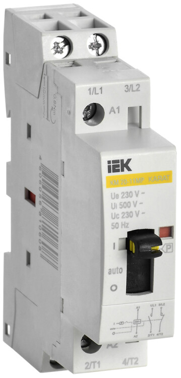 Контакторы модульные типа КМ торговой марки IEK предназначены для применения в сетях переменного тока напряжением до 400 В частоты 50 Гц и служат для коммутации слабоиндуктивных нагрузок с номинальным током до 63 А.