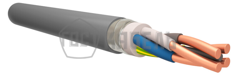 Кабель круглый с медными жилами, с изоляцией из ПВХ пластиката, с броней из стальных оцинкованных лент и защитным шлангом из ПВХ пластиката пониженной горючести, не распространяющий горение по категории А с низким дымо- и газовыделением.
