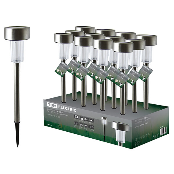 Светильник СС-325 на солнечных батареях, сталь, 6х35 см, ДБ, TDM