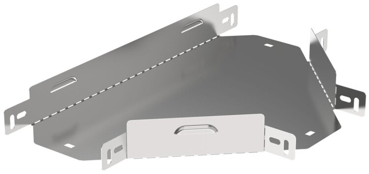 Разветвитель Т-образный горизонтальный предназначен для организации Т-образного ответвления кабельной трассы в горизонтальной плоскости. Аксессуар поставляется в плоском виде, имеет направляющую перфорацию для сгиба и сборки изделия перед установкой. Стыковка аксессуара с лотком осуществляется за счёт телескопического соединителя. Подходит для всех типов листовых лотков серии ESCA. Крышка на аксессуар заказывается отдельно. Аксессуар изготовлен из стали оцинкованной методом Сендзимира (защитный слой цинка не менее 5-10 мкм).