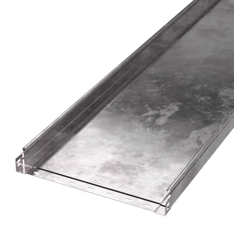 Система металлических лотков изготовленных из стали с защитным покрытием по методу Сендзимира – это изделия, на которых защитное цинковое покрытие было нанесено на листовую сталь перед изготовлением. Толщина защитного покрытия варьируется от 10 до 22мкм. Климатическое исполнение изделий УХЛ2, что предусматривают эксплуатацию в помещении и под навесом, при температуре эксплуатации от -80 до +150°С.