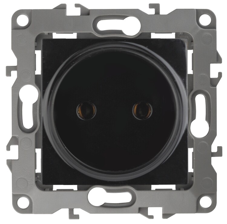 Розетка серии Эра 12 скрытой установки механизм цвет чёрный 12-2105-06. Номинальные характеристики 16А 250В . Сделана из поликарбоната, оснащёна автоматическими клеммами для быстрй и надёжной фиксации жил кабеля в механиме. Парные клеммы обеспечивают соединение шлейфом. Монтаж в подрозетник производится и на лапки, и на винты. Рамки приобретаются отдельно. Рамки Эра 12: 1 пост 12-5001-хх, 2 поста 12-5002-хх, 3 поста 12-5003-хх, 4 поста 12-5004-хх, 5 постов 12-5005-хх. Рамки Эра 12 Сатин: 1 пост 12-5101-хх, 2 поста 12-5102-хх, 3 поста 12-5103-хх, 4 поста 12-5104-хх, 5 постов - 12-5105-хх (хх - код цвета: 01-белый, 02-слоновая кость, 03-алюминий, 04-шампань, 05-антрацит, 06-чёрный, 07-ольха(белёный дуб-сатин), 08-вишня, 09-дуб, 10-венге, 11-сосна, 21-жёлтый, 22-оранжевый, 23-красный, 24-охра, 25-бордо, 26-лайм, 27-зелёный, 28-голубой, 29-синий).