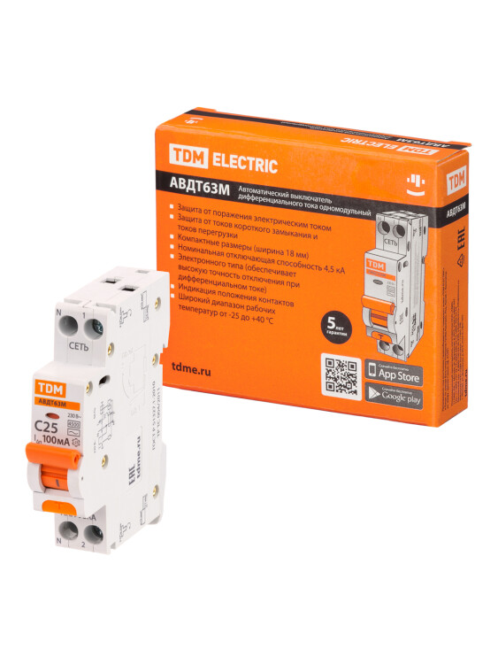 АВДТ 63М 2P(1P+N) C25 100мА 4,5кА тип АС TDM