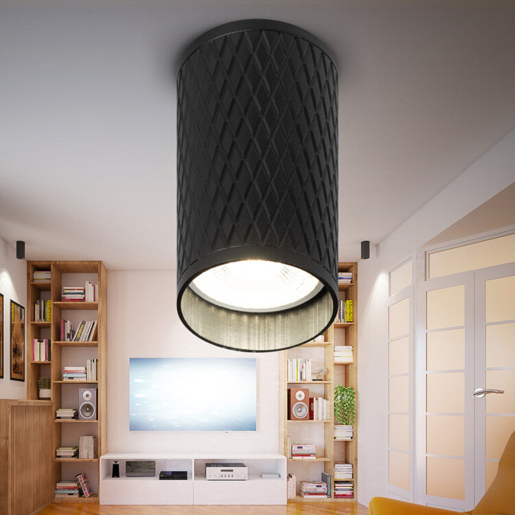 <p>Накладной светильник OL44 BK делает помещение зрительно более стильным и интересным. Используя по периметру несколько однотипных осветительных устройств, можно сформировать интеренсые световые геометрические рисунки. Цоколь для источника света GU10, напряжение питания ~230В 50/60Гц, материал металл, цвет светильника черный, размер D55x100мм, максимальная мощность лампы 12Вт, степень з ащиты IP20</p>