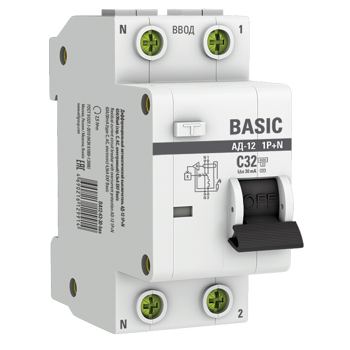 Выключатели автоматические дифференциального тока (дифавтоматы) АД-12 EKF серии Basic представляют собой аппараты, сочетающие функции автоматического выключателя с устройством защитного отключения. При обнаружении автоматическим выключателем в защищаемом участке сети тока утечки (повреждения) на землю или сверхтока (тока перегрузки или короткого замыкания) происходит срабатывание устройства, приводящее к отключению защищаемой сети.