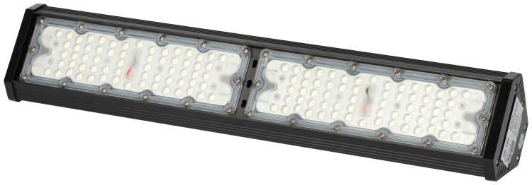 <p>Светильник светодиодный высокомощный. Тип светильника: Замена ГСП, ЖСП, СДГ. Область применения: Предназначен для общего освещения складских и производственных помещений, в т.ч. открытых пандусов, торговых и выставочных павильонов, гипермаркетов, спортивных сооружений и т.п.. Преимущества: КСС "Г" - оптимальна для освещения складов; Коэффициент пульсации <5% - допустимо к применению в заводских цехах; 105Лм/Вт соответствует требованиям Постановления Правительства №1356. Потребляемая мощность, Вт: 100. Световой поток, Лм: 10 500. Светоодача, Лм/Вт: 105. Цветовая температура, К: 5000K. Индекс цветопередачи, Ra: Ra>80. Степень защиты от воздействия окружающей среды, IP: IP54. Климатическое исполнение: У2. Диапазон рабочих температур: (-45+40). Тип кривой силы света: Г (140/55). Коэффициент мощности, PF: >0,95. Коэффициент пульсации светового потока, %: <5%. Материал рассеивателя: поликарбонат. Материал корпуса: Алюминий. Цвет корпуса: черный. Габариты, мм: 502х103,5х73,5. Питающее напряжение, В: 170-265. Гарантия: 3 года.</p>