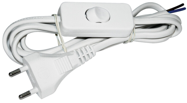 Шнур УШ-1КВ с плоской вилкой и выключателем 2х0,75/2метра, белый ИЭК