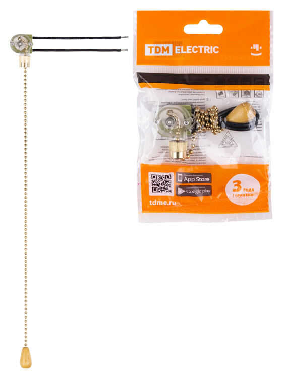 Сонетка-выключатель для бра с цепочкой 3А 250В золото TDM