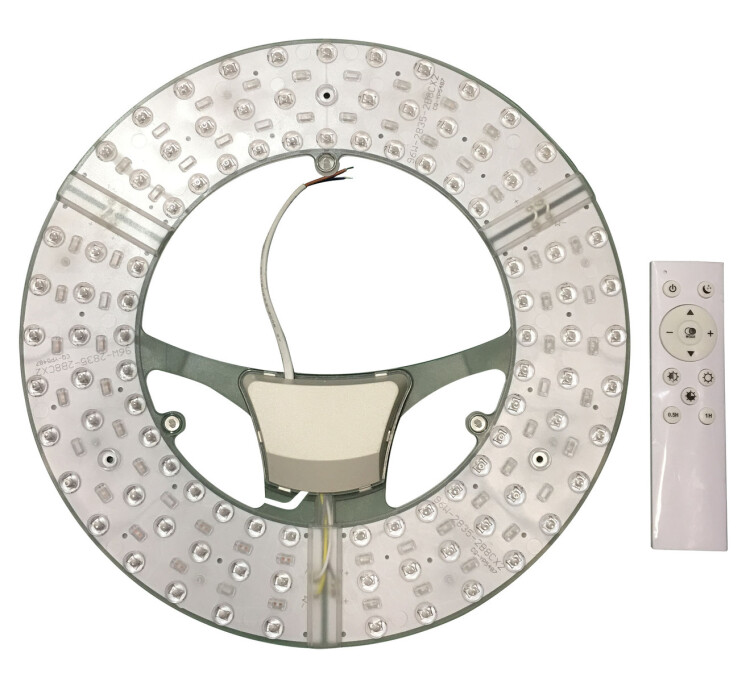 <p>Компания ЭРА разработала и выпустила серию универсальных компонентов светодиодные модули с пультом управления. Данная разработка предназначена для замены штатных элементов или для установки в светильники, в которых источником света служила стандартная лампа. Светодиодный модуль выступает как сменный элемент, который может подойти к рассеивателям любого дизайна. Благодаря наличию пульта управления можно менять цветовую температуру в диапазоне 3000 7000 К, что позволяет использовать светодиодный светильник в помещениях с широким функционалом: от уютной спальни до строгого офиса. Корпус изготовлен из металла, в него встроен LED-модуль. Диаметр светильника составляет 32 см, мощность лампы 49 Вт, срок службы лампы составляет 30000 часов.</p>