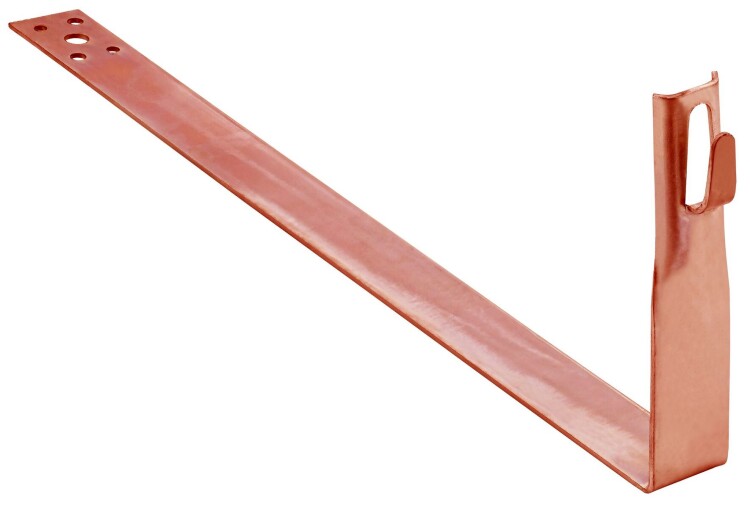 Держатель проводника круглого для черепичной кровли с безболтовым зажимом предназначен для закрепления прутка на черепичной, мягкой и шиферной кровле. Держатель крепится к кровле при помощи метизов. Фиксация проводника происходит при помощи зажима в «язычке» держателя. Материал корпуса - медь.