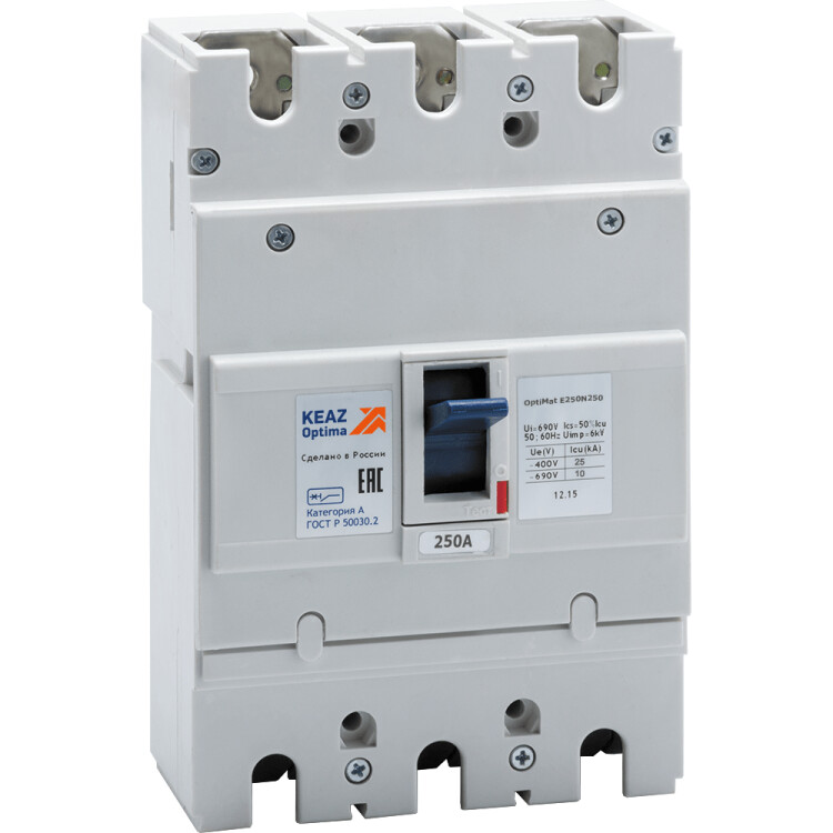 Оптимальность характеристик OptiMat E реализуется в эффективных защитах от коротких замыканий и токов перегрузки всего двумя типоразмерами - OptiMat E100 – от 16А до 100АOptiMat E250 – от 125A до 250А. Предельная коммутационная способность (ПКС) автоматических выключателей от 10 кА при 400В переменного тока частотой 50/60 Гц является нужным значением для большинства объектов коммерческого и жилого строительства, а также инфраструктурных объектов. Преимущества - совместное применение с модульной аппаратурой за счет одинаковой глубины установки и синхронизации защитных характеристик дает возможность комплексного удешевления проектов электроснабжения, удобство монтажа выключателей в любом пространственном положении, как на монтажную панель, так и на Din-рейку с помощью адаптера, возможность подвода питания к выводам с любой стороны, пригодность к разъединению и наличие блокировок обеспечивают наибольшую безопасность при обслуживании объектов.