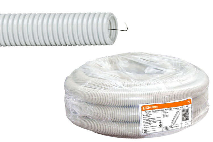 Труба гофрированная ПВХ 16 мм с зондом (10 м) легкая