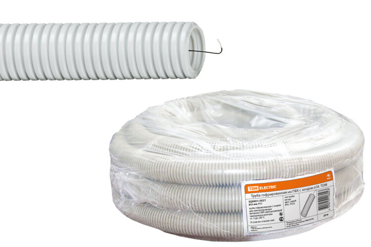 Труба гофрированная ПВХ 16 мм с зондом (20 м) легкая