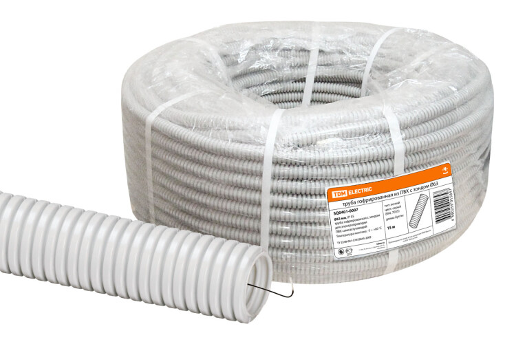 Труба гофрированная ПВХ 63 мм с зондом (15 м) легкая