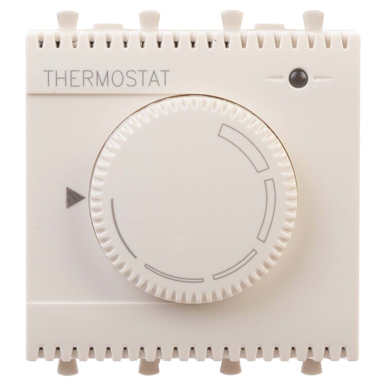 Термостат - устройство, предназначенное для регулировки температуры. Компания ДКС предлагает вашему вниманию термостат для теплых полов, применение которого позволяет устанавливать комфортную температуру пола. Двухмодульный термостат монтируется в настенный кабель канал. Номинальное напряжение - 230 В, номинальный ток - 12 А. Эта модель выполнена в цвете ""Ванильная дымка"". Это сложный оттенок с нотками желтого и синего, сочетающийся с любым стилем и цветовой гаммой.