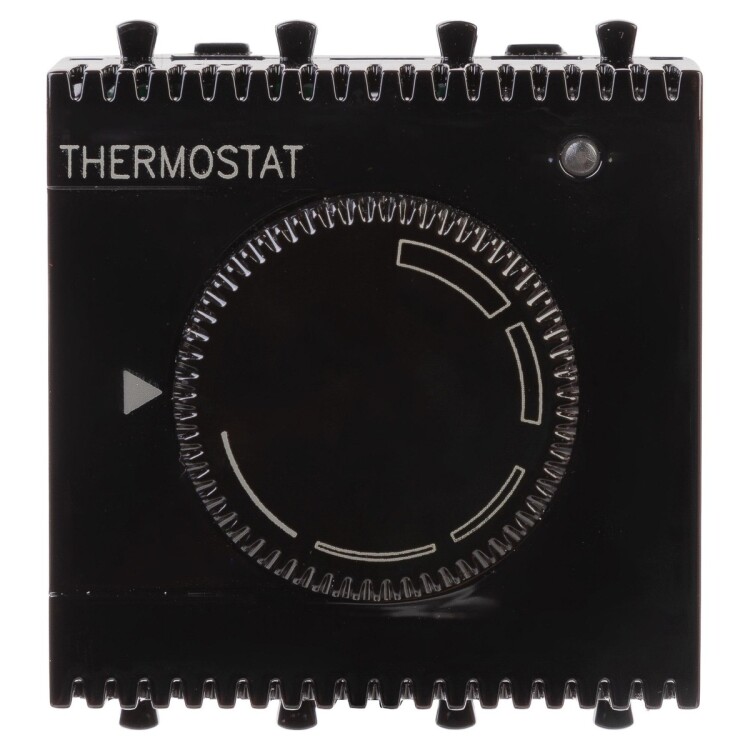 Термостат - устройство, предназначенное для регулировки температуры. Компания ДКС предлагает вашему вниманию термостат для теплых полов, применение которого позволяет устанавливать комфортную температуру пола. Двухмодульный термостат монтируется в настенный кабель канал. Номинальное напряжение - 230 В, номинальный ток - 12 А. Эта модель выполнена в цвете ""Черный квадрат"". Это сложный оттенок с нотками желтого и синего, сочетающийся с любым стилем и цветовой гаммой.