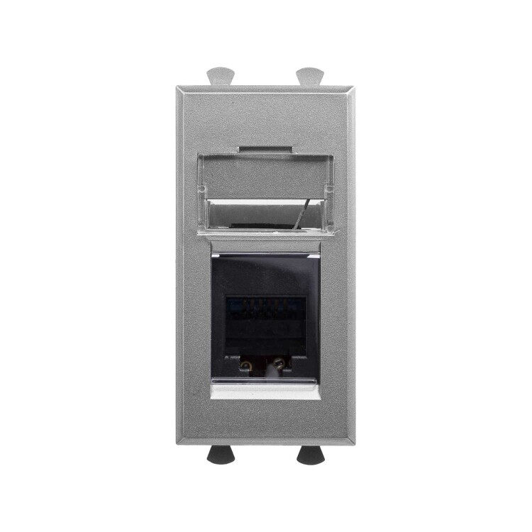 Телефонная розетка RJ-12 модульная. Предназначена для монтажа в систему кабельных коробов ""In-liner Front"" и систему организации рабочих мест ""Sotto"" при помощи рамок-суппортов и каркасов ""Avanti"" (код 4400912 и т.д.), подключение телефонного кабеля к рабочему месту. 6P6C. С пылезащитной шторкой, с маркировочной табличкой. В комплекте разъем Keystone. Для заделки контактов используется инструмент типа 110. Фиксация прои зводится в подрозеточные коробки глубиной не менее 45 мм при помощи каркаса с лапками (код 4400802) и саморезов. 1 модуль. Цвет: ""Закаленная сталь""