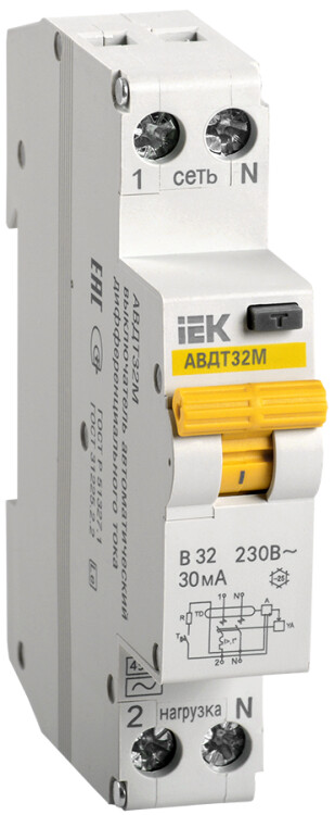 • Надежная защита: как и другие аппараты серий АВДТ, АД и ВД торговой марки IEK, АВДТ32М является единственно возможной защитой при прямом прикосновении человека к токоведущим частям;