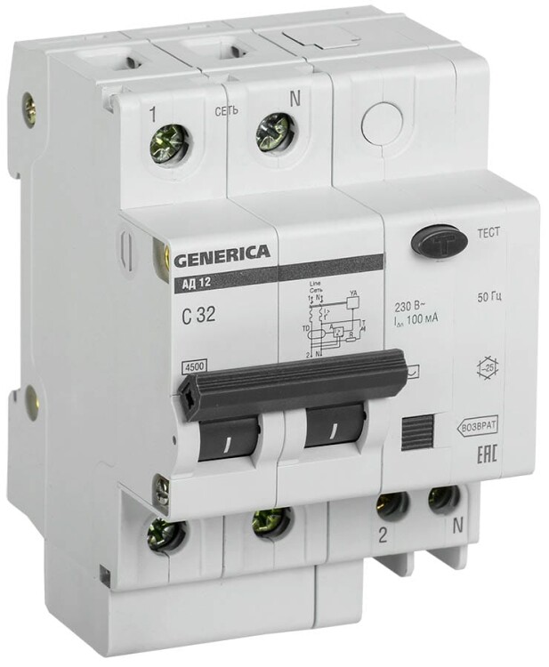 Диф.автомат АД12 2Р 32А 100мА GENERICA