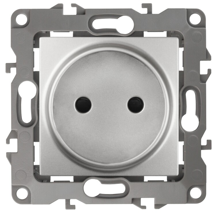 Розетка серии Эра 12 скрытой установки механизм цвет алюминий 12-2105-03. Номинальные характеристики 16А 250В . Сделана из поликарбоната, оснащёна автоматическими клеммами для быстрй и надёжной фиксации жил кабеля в механиме. Парные клеммы обеспечивают соединение шлейфом. Монтаж в подрозетник производится и на лапки, и на винты. Рамки приобретаются отдельно. Рамки Эра 12: 1 пост 12-5001-хх, 2 поста 12-5002-хх, 3 поста 12-5003-хх, 4 поста 12-5004-хх, 5 постов 12-5005-хх. Рамки Эра 12 Сатин: 1 пост 12-5101-хх, 2 поста 12-5102-хх, 3 поста 12-5103-хх, 4 поста 12-5104-хх, 5 постов - 12-5105-хх (хх - код цвета: 01-белый, 02-слоновая кость, 03-алюминий, 04-шампань, 05-антрацит, 06-чёрный, 07-ольха(белёный дуб-сатин), 08-вишня, 09-дуб, 10-венге, 11-сосна, 21-жёлтый, 22-оранжевый, 23-красный, 24-охра, 25-бордо, 26-лайм, 27-зелёный, 28-голубой, 29-синий).
