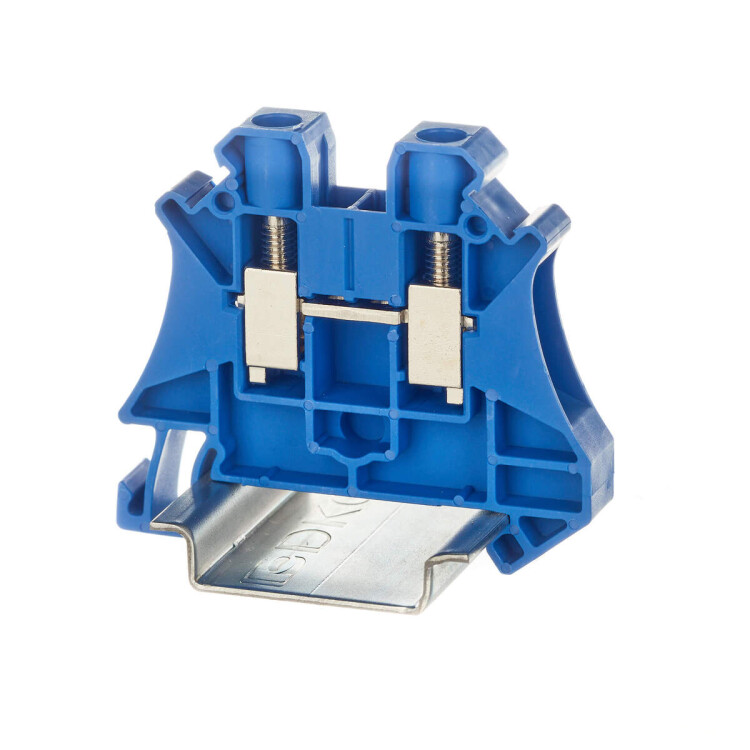 Проходная клемма с винтовым зажимом предназначена для соединения двух проводников. Монтаж на DIN-рейку OMEGA. Температура эксплуатации от -40 до +105C. Корпус выполнен из ПА 6.6 с классом горючести V0 UL-94. Синий цвет, 2 точки подключения, 6 мм2. Габариты (ВxШxГ) 47,5x53x8,2 мм.
