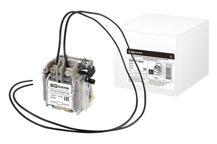 • Расцепитель минимального напряжения РМ – отключение автоматического выключателя ВА89 при снижении фазного или линейного напряжения на его входе до 70% от номинального, а также для защиты от его включения, если напряжение в цепи менее 85% от номинального.