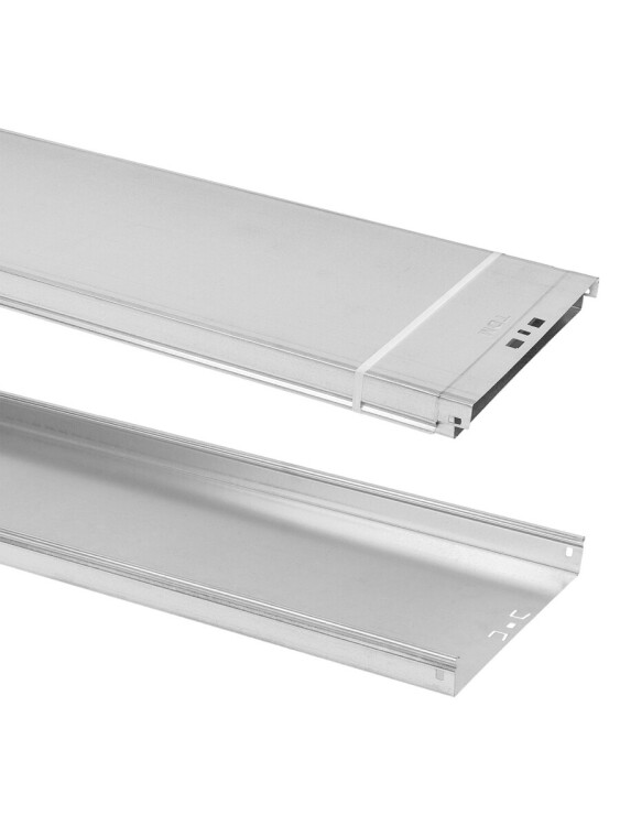 Назначение: Предназначены для прокладки кабельных трасс и слаботчных инженерных систем Применение: Объекты промышленного строительства. Объекты коммерческого строительства. Объекты гражданского строительства. Преимущества: Объемная продольная и поперечная перфорация (увеличение несущей способности на 35%). Дополнительный контур заземления по крышке лотка. Телескопический разъем "папа-мама". Травмобезопасная округлая кромка. Логотип компании. Замковое соединение крышки с лотком. Предварительная "безвинтовая" фиксация при соединении встык. Конструкция: Изготавливаются методом профилирования (roll forming) на автоматической линии. Материалы: Рулонная холоднокатанная сталь (ГОСТ 14918-80). Комплектация: Упаковка: