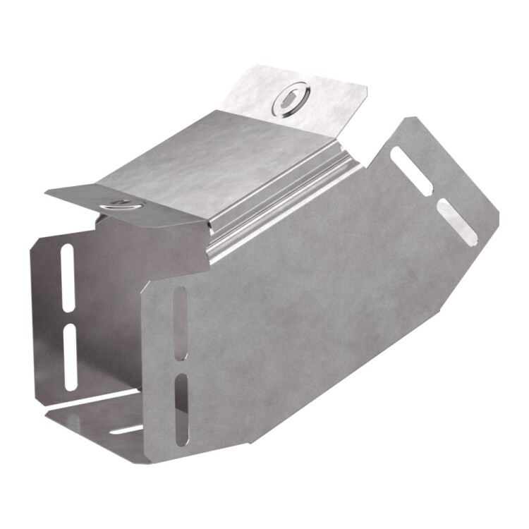 Аксессуары изготовленные из стали с защитным покрытием по методу Сендзимира – это изделия, на которых защитное цинковое покрытие было нанесено на листовую сталь перед изготовлением. Толщина защитного покрытия варьируется от 10 до 22мкм. Климатическое исполнение изделий УХЛ2, что предусматривают эксплуатацию в помещении и под навесом, при температуре эксплуатации от -80 до +150°С. Угол вертикальный внутренний 45 градусов предназначен для подъема кабельных трасс на 45 градусов, для перфорированных и глухих лотков. В комплект входит крышка.