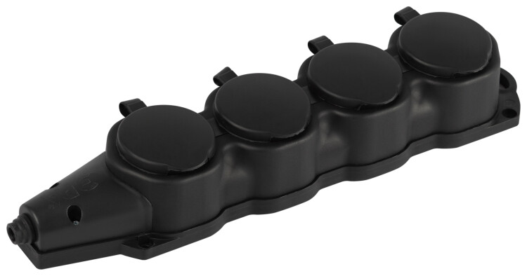 <p>Каучуковая колодка ЭРА KX-4e-B-IP44 4 гнезда, с заземлением, черная, для подключения кабеля (без разбора корпуса). Съёмная крышка. IP44-защита от пыли и влаги. Максимальная мощность 16А/3500Вт. Для кабеля сечением до 3x2,5мм2.</p>