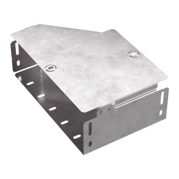 Аксессуары изготовленные из стали с защитным покрытием по методу Сендзимира – это изделия, на которых защитное цинковое покрытие было нанесено на листовую сталь перед изготовлением. Толщина защитного покрытия варьируется от 10 до 22мкм. Климатическое исполнение изделий УХЛ2, что предусматривают эксплуатацию в помещении и под навесом, при температуре эксплуатации от -80 до +150°С. Переходник правы й предназначен для перехода с одной ширины лотка на другую. В комплект входит крышка.