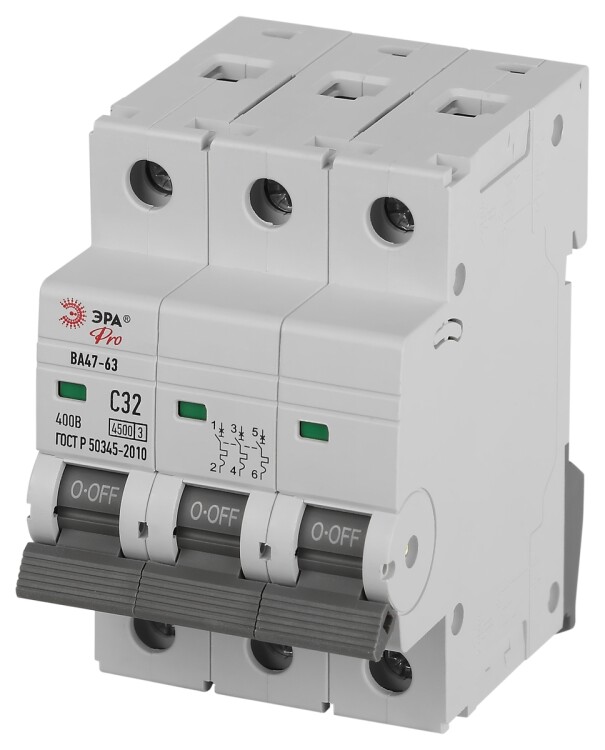 <p>Автоматический выключатель - контактный коммутационный аппарат, способный включать токи, проводить их и отключать при нормальных условиях в цепи, а также включать, проводить в течение нормированного (заданного) времени и автоматически отключать токи при нормированных ненормальных условиях в цепи, таких, как токи короткого замыкания. Автоматические выключатели бывают одно-, двух-, трёх- или четырёхполюсными и имеют следующие конструктивные узлы: главную контактную систему, дугогасительную систему, привод расцепляющего устройства, расцепители. Автоматические выключатели ВА47-63 предназначены для защиты распределительных и групповых цепей, имеющих различную нагрузку: электроприборы, освещение выключатели с характеристикой В; двигатели с небольшими пусковыми токами (компрессор, вентилятор) выключатели с характеристикой C; двигатели с большими пусковыми токами (подъемные механизмы, насосы) выключатели с характеристикой D.</p>