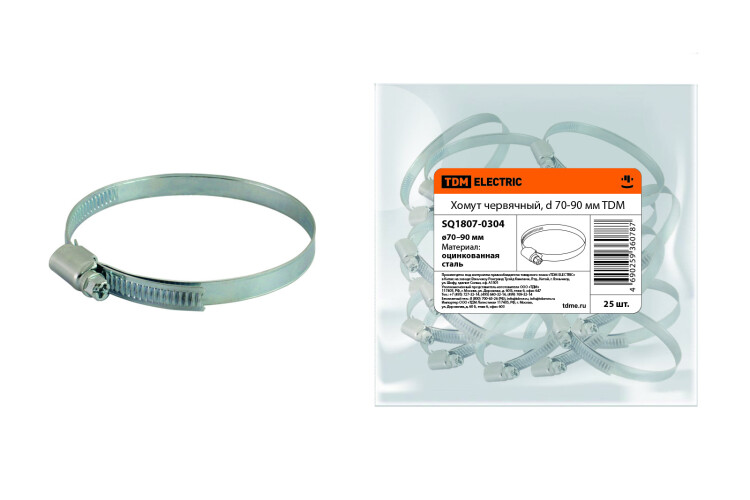 Хомут червячный, d 70-90 мм TDM