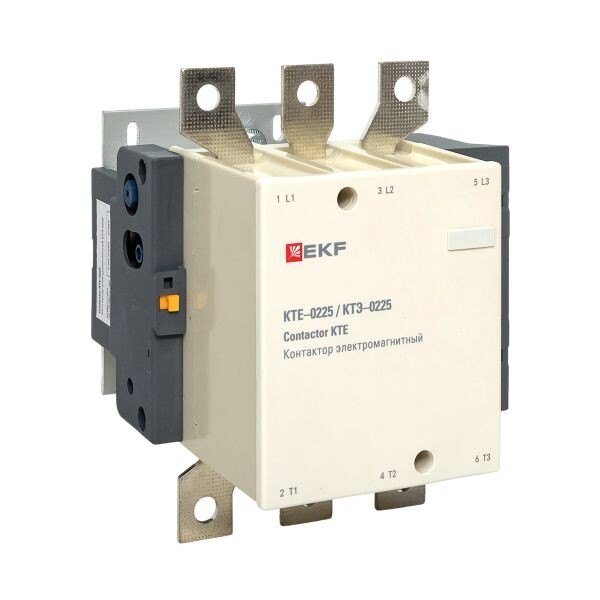 Контакторы КТЭ EKF PROxima состоят из корпуса, закрепленных в нем неподвижных контактов, подвижных контактов, которые закреплены в подвижной части магнитной системы. Неподвижная часть магнитной системы закреплена жестко в корпусе КTЭ. Пружина препятствует смыканию контактов. При подаче напряжения на катушку управления в магнитной системе контактора возникает магнитное поле, которое, преодолевая сопротивление пружины, смыкает магнитную систему и замыкает контакты. При отключении напряжения с катушки управления пружина размыкает контакты.
