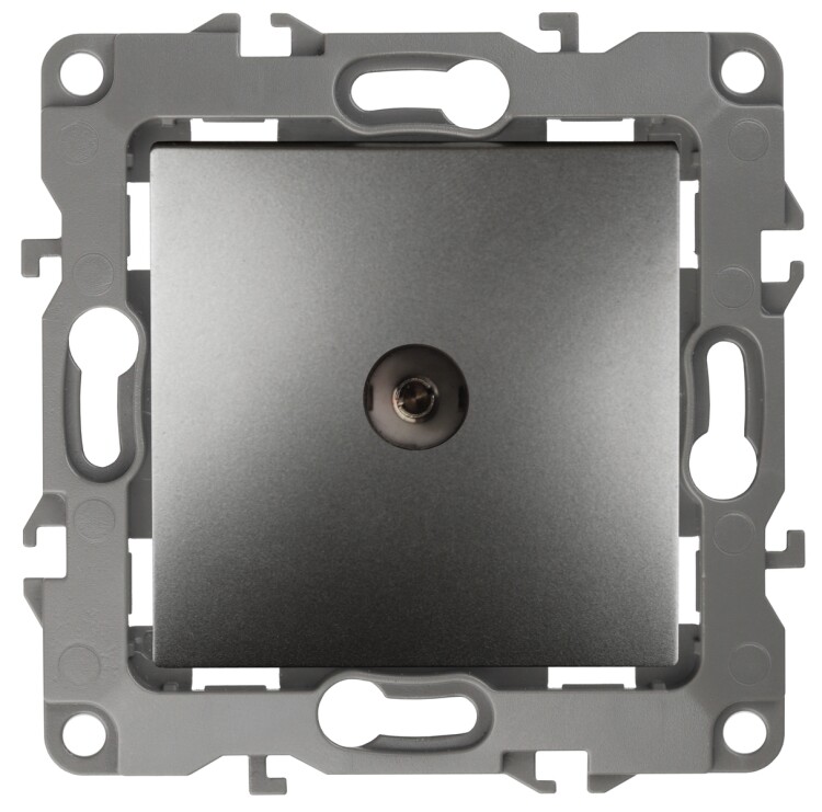 Розетка телевизионная одиночная серии Эра 12 скрытой установки механизм цвет графит 12-3101-12. Сделана из поликарбоната. Монтаж в подрозетник производится и на лапки, и на винты. Рамки приобретаются отдельно. Рамки Эра 12: 1 пост 12-5001-хх, 2 поста 12-5002-хх, 3 поста 12-5003-хх, 4 поста 12-5004-хх, 5 постов 12-5005-хх. Рамки Эра 12 Сатин: 1 пост 12-5101-хх, 2 поста 12-5102-хх, 3 поста 12-5103-хх, 4 поста 12-5104-хх, 5 постов - 12-5105-хх