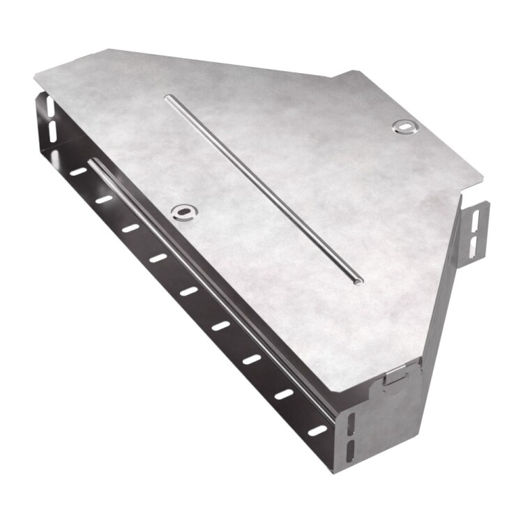 Аксессуары изготовленные из стали с защитным покрытием по методу Сендзимира – это изделия, на которых защитное цинковое покрытие было нанесено на листовую сталь перед изготовлением. Толщина защитного покрытия варьируется от 10 до 22мкм. Климатическое исполнение изделий УХЛ2, что предусматривают эксплуатацию в помещении и под навесом, при температуре эксплуатации от -80 до +150°С. Переходник симме тричный предназначен для перехода с одной ширины лотка на другую. В комплект входит крышка.