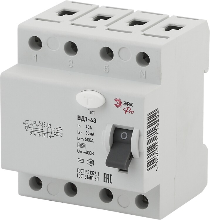 УЗО ЭРА PRO NO-902-39 ВД1-63 4P 40А 30мА