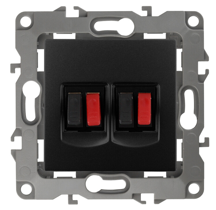 Розетка двойная аудио стерео серии Эра 12 скрытой установки механизм цвет антрацит 12-3112-05. Сделана из поликарбоната. Монтаж в подрозетник производится и на лапки, и на винты. Рамки приобретаются отдельно. Рамки Эра 12: 1 пост 12-5001-хх, 2 поста 12-5002-хх, 3 поста 12-5003-хх, 4 поста 12-5004-хх, 5 постов 12-5005-хх. Рамки Эра 12 Сатин: 1 пост 12-5101-хх, 2 поста 12-5102-хх, 3 поста 12-5103-хх, 4 поста 12-5104-хх, 5 постов - 12-5105-хх (хх - код цвета: 01-белый, 02-слоновая кость, 03-алюминий, 04-шампань, 05-антрацит, 06-чёрный, 07-ольха(белёный дуб-сатин), 08-вишня, 09-дуб, 10-венге, 11-сосна, 21-жёлтый, 22-оранжевый, 23-красный, 24-охра, 25-бордо, 26-лайм, 27-зелёный, 28-голубой, 29-синий).