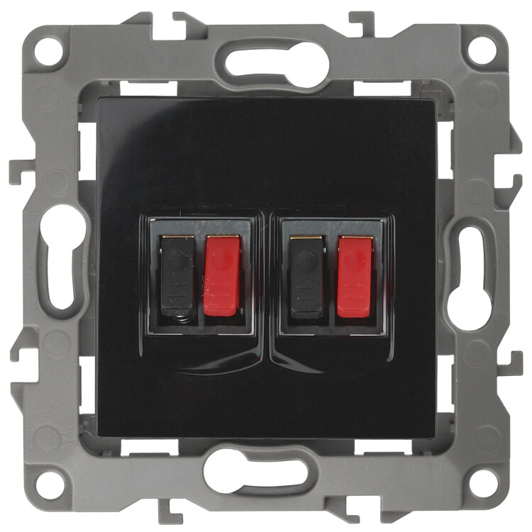 Розетка двойная аудио стерео серии Эра 12 скрытой установки механизм цвет чёрный 12-3112-06. Сделана из поликарбоната. Монтаж в подрозетник производится и на лапки, и на винты. Рамки приобретаются отдельно. Рамки Эра 12: 1 пост 12-5001-хх, 2 поста 12-5002-хх, 3 поста 12-5003-хх, 4 поста 12-5004-хх, 5 постов 12-5005-хх. Рамки Эра 12 Сатин: 1 пост 12-5101-хх, 2 поста 12-5102-хх, 3 поста 12-5103-хх, 4 поста 12-5104-хх, 5 постов - 12-5105-хх (хх - код цвета: 01-белый, 02-слоновая кость, 03-алюминий, 04-шампань, 05-антрацит, 06-чёрный, 07-ольха(белёный дуб-сатин), 08-вишня, 09-дуб, 10-венге, 11-сосна, 21-жёлтый, 22-оранжевый, 23-красный, 24-охра, 25-бордо, 26-лайм, 27-зелёный, 28-голубой, 29-синий).