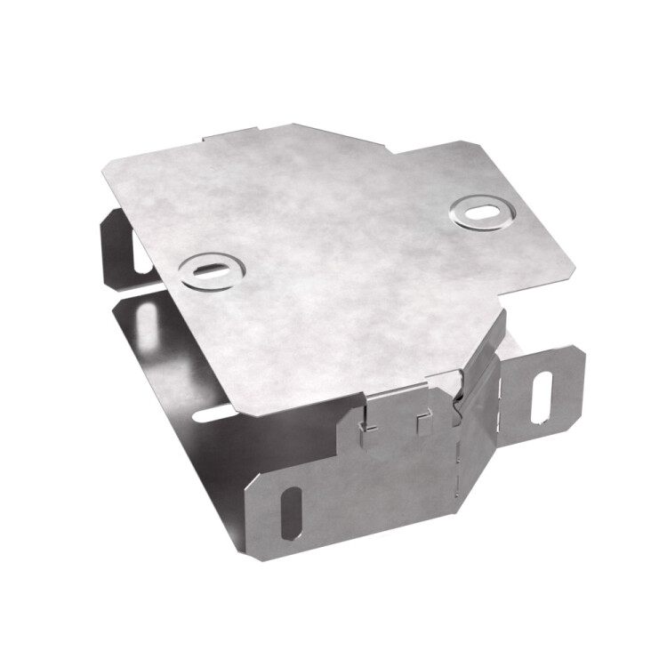 Аксессуары изготовленные из стали с защитным покрытием по методу Сендзимира – это изделия, на которых защитное цинковое покрытие было нанесено на листовую сталь перед изготовлением. Толщина защитного покрытия варьируется от 10 до 22мкм. Климатическое исполнение изделий УХЛ2, что предусматривают эксплуатацию в помещении и под навесом, при температуре эксплуатации от -80 до +150°С. Переходник симме тричный предназначен для перехода с одной ширины лотка на другую. В комплект входит крышка.