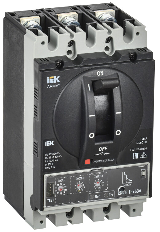 Благодаря высокой отключающей способности (до 150 кА) линейка автоматических выключателей в литом корпусе ARMAT идеальна для применения на энергоемких промышленных объектах. В комплексе с воздушными автоматическими выключателями ARMAT используются в НКУ до 6300 А.