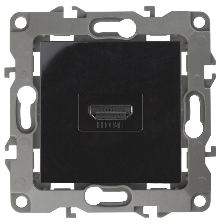 Розетка HDMI серии Эра 12 скрытой установки механизм цвет чёрный 12-3114-06. Сделана из поликарбоната. Монтаж в подрозетник производится и на лапки, и на винты. Рамки приобретаются отдельно. Рамки Эра 12: 1 пост 12-5001-хх, 2 поста 12-5002-хх, 3 поста 12-5003-хх, 4 поста 12-5004-хх, 5 постов 12-5005-хх. Рамки Эра 12 Сатин: 1 пост 12-5101-хх, 2 поста 12-5102-хх, 3 поста 12-5103-хх, 4 поста 12-5104-хх, 5 постов - 12-5105-хх (хх - код цвета: 01-белый, 02-слоновая кость, 03-алюминий, 04-шампань, 05-антрацит, 06-чёрный, 07-ольха(белёный дуб-сатин), 08-вишня, 09-дуб, 10-венге, 11-сосна, 21-жёлтый, 22-оранжевый, 23-красный, 24-охра, 25-бордо, 26-лайм, 27-зелёный, 28-голубой, 29-синий).