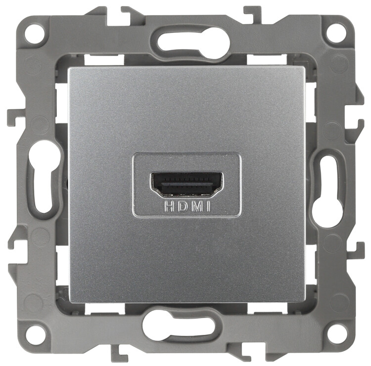 Розетка HDMI серии Эра 12 скрытой установки механизм цвет алюминий 12-3114-03. Сделана из поликарбоната. Монтаж в подрозетник производится и на лапки, и на винты. Рамки приобретаются отдельно. Рамки Эра 12: 1 пост 12-5001-хх, 2 поста 12-5002-хх, 3 поста 12-5003-хх, 4 поста 12-5004-хх, 5 постов 12-5005-хх. Рамки Эра 12 Сатин: 1 пост 12-5101-хх, 2 поста 12-5102-хх, 3 поста 12-5103-хх, 4 поста 12-5104-хх, 5 постов - 12-5105-хх (хх - код цвета: 01-белый, 02-слоновая кость, 03-алюминий, 04-шампань, 05-антрацит, 06-чёрный, 07-ольха(белёный дуб-сатин), 08-вишня, 09-дуб, 10-венге, 11-сосна, 21-жёлтый, 22-оранжевый, 23-красный, 24-охра, 25-бордо, 26-лайм, 27-зелёный, 28-голубой, 29-синий).