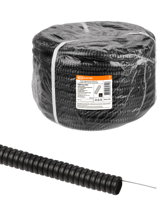 Применение: Трубы гофрированные из ПНД предназначены для прокладки кабеля при монтаже электропроводки скрытым способом в негорючих конструкциях, например в: штробах, стяжках, грунте, или в монолите строений. Трубы ПНД не могут применяться для открытой прокладки внутри помещений.