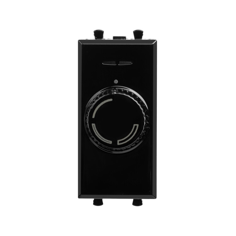 Диммер поворотный модульный. Предназначен для монтажа в систему кабельных коробов ""In-liner Front"", систему организации рабочих мест ""Sotto"" при помощи рамок-суппортов и каркасов ""Avanti"" (код 4400912 и т.д.). Назначение: управление освещением помещения, регулирование 60–800 Вт для ламп накаливания и галогенных ламп. Диаметр отверстий для ввода кабелей – 3 мм, винтовые зажимы, шаблон для зачистки кабеля – 11 мм, встроенная подсветка. Фиксация в подрозеточные коробки глубиной не менее 45 мм при помощи каркаса с лапками (код 4400802) и саморезов. 1 модуль. Цвет: ""Черный квадрат"". Производитель оставляет за собой право вносить во внешний вид изделия изменения, которые не влияют на его функционал, безопасность и надежность.