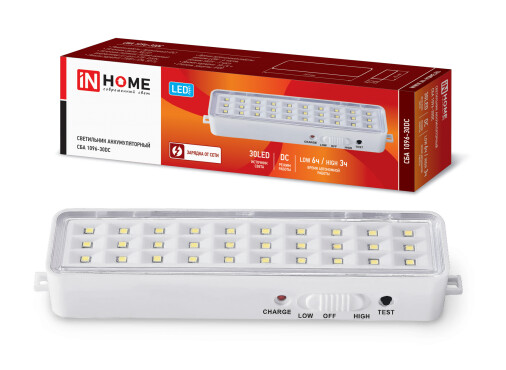 Аккумуляторные светодиодные светильники серии СБА ТМ IN HOME обеспечат отличное освещение в экстренном случае, когда из-за перебоев в электроснабжении или возникновения чрезвычайной аварийной ситуации отключены основные источники света. Данные светильники можно устанавливать стационарно или использовать в качестве переносного источника света. Рекомендованы для эксплуатации в общественных, производственных, бытовых, подсобных и других помещениях при температуре от +1 до +40°C. Корпус светильника изготовлен из прочного ABC-пластика, материал рассеивателя – негорючий поликарбонат. Аварийный светильник может работать как от сети, так и от собственной батареи, сохраняя работоспособность длительное время – от 3 до 8 часов в зависимости от модели. Номинальный срок службы – 30.000 часов. Гарантия – 2 года.